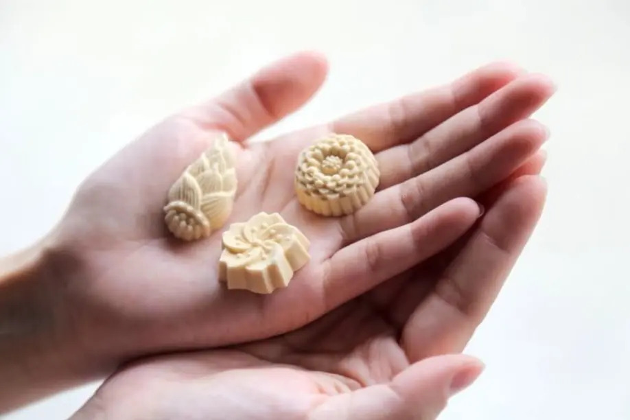 このような繊細な型を使って、好きな形の和三盆を手作りできるんです。