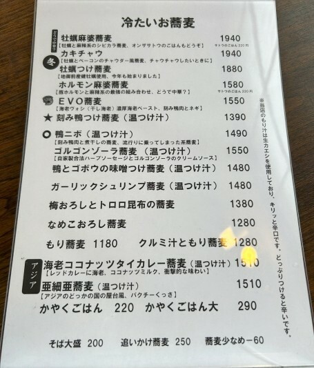 色々と迷った末、筆者は「牡蠣つけ蕎麦」(冬メニュー)と「かやくご飯」に決定!