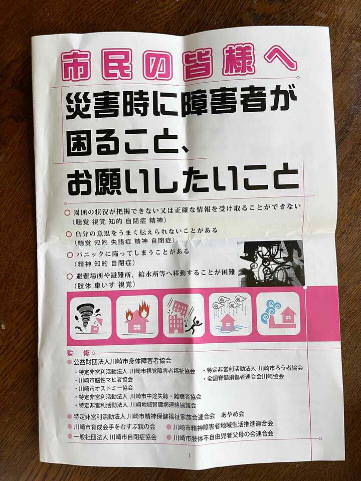 『市民の皆様へ 災害時に障害者が困る事、お願いしたいこと』というパンフレットだ。