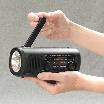 ●電源がない場所でもすぐ使える「手回し」便利な本体充電機能付き