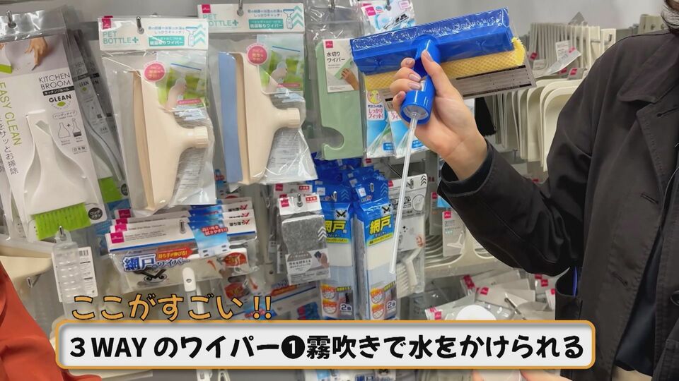 ダイソーなら、ガラス掃除用の3WAYワイパーが税込220円😲