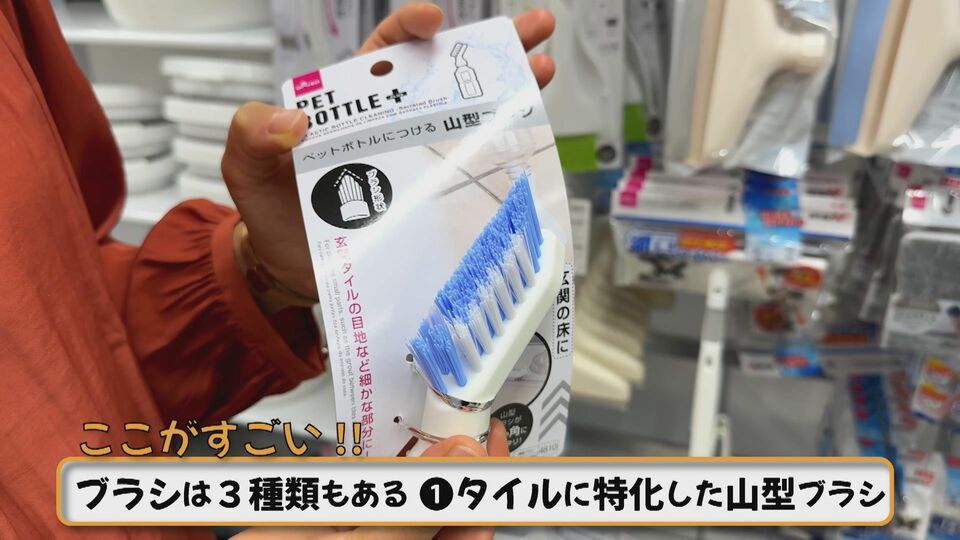①タイルに特化した山型ブラシ