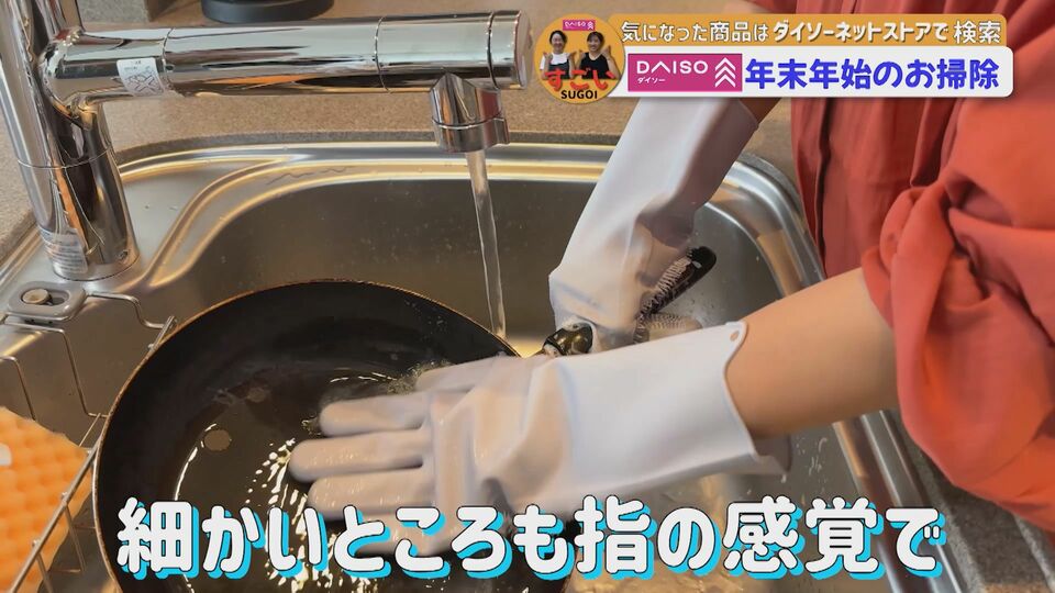 DAISO×RCC「公式ユーチュー部」 では、この手袋で油汚れが付いた🍳フライパンを掃除。これを見たら、あなたも使ってみたくなるはずです。