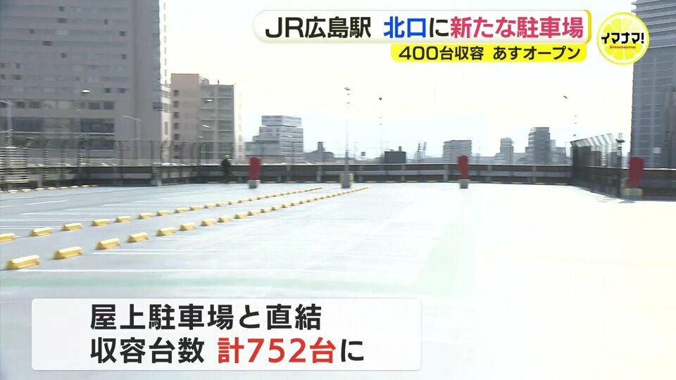 新しい駐車場は広島駅の北西の6階建てで延べ床面積は1万6667㎡、400台が収容できます。これまで新幹線の駅舎の上に設置されていた屋上駐車場とつながり、収容台数は合わせて752台となります。