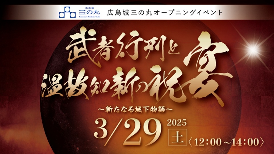 3月29日(土)12時~14時、広島城・三の丸エリアのオープンに合わせて、広島市中心部で武者行列「武者行列と温故知新の祝宴 ~新たなる城下物語~」が行われます。IRAWのライブ配信でぜひご覧ください!