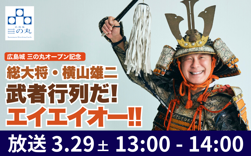 横山雄二アナウンサーを総大将とし、サンフレッチェOBの久保竜彦さん、上田宗箇流の若宗匠・上田宗篁さんらも出演します。