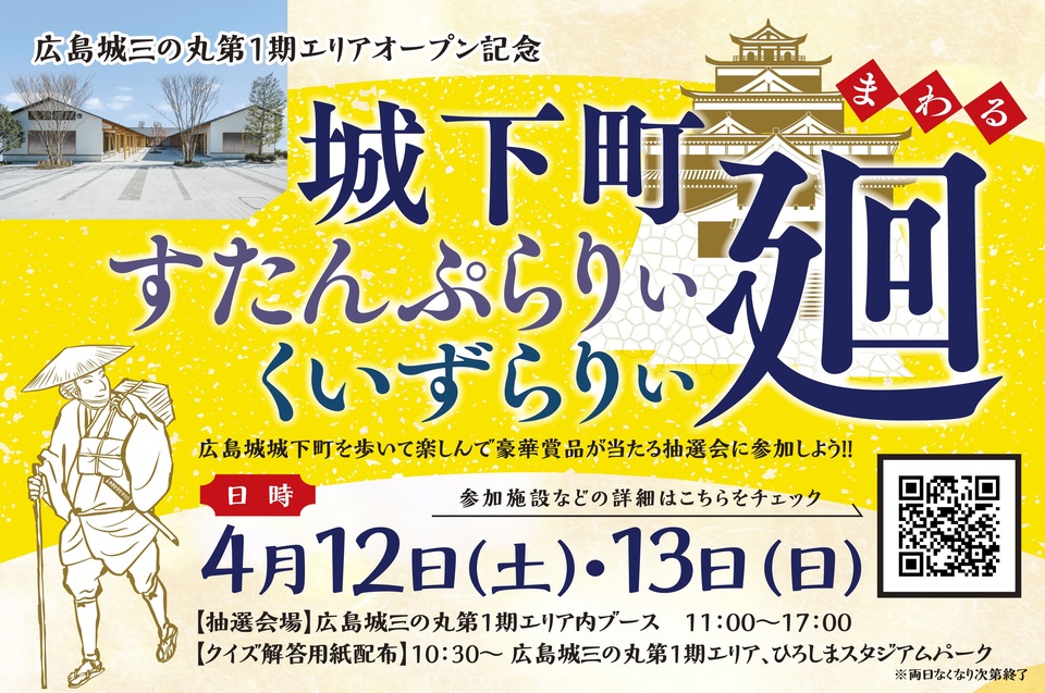 広島城三の丸第1期エリアのオープンを記念して、豪華賞品が当たる「でじたるすたんぷらりぃ」&「くいずらりぃ」を同時開催!