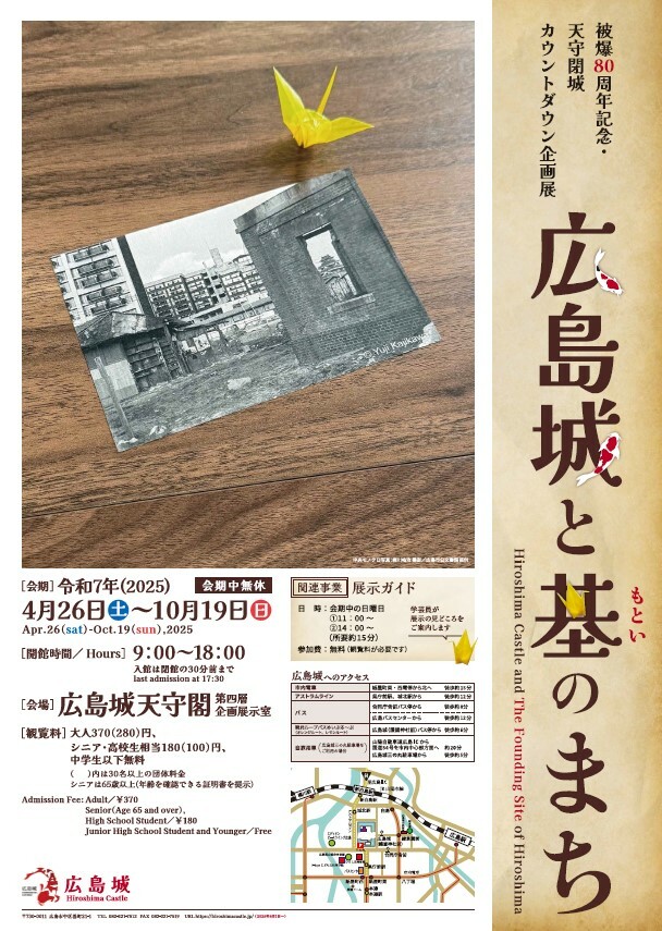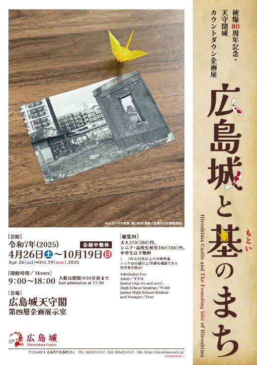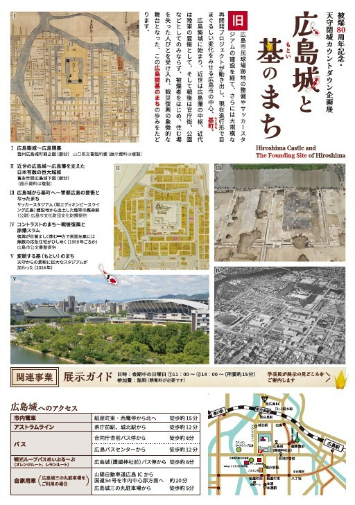 広島城天守では、被爆80周年記念・天守閉城カウントダウン企画展「広島城と基(もとい)のまち」を開催中です。