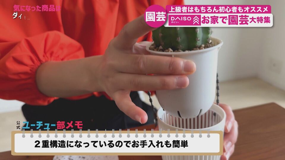 二重構造になっていて、外側の鉢に水を入れておけば、植物が必要な水分を吸ってくれます💧