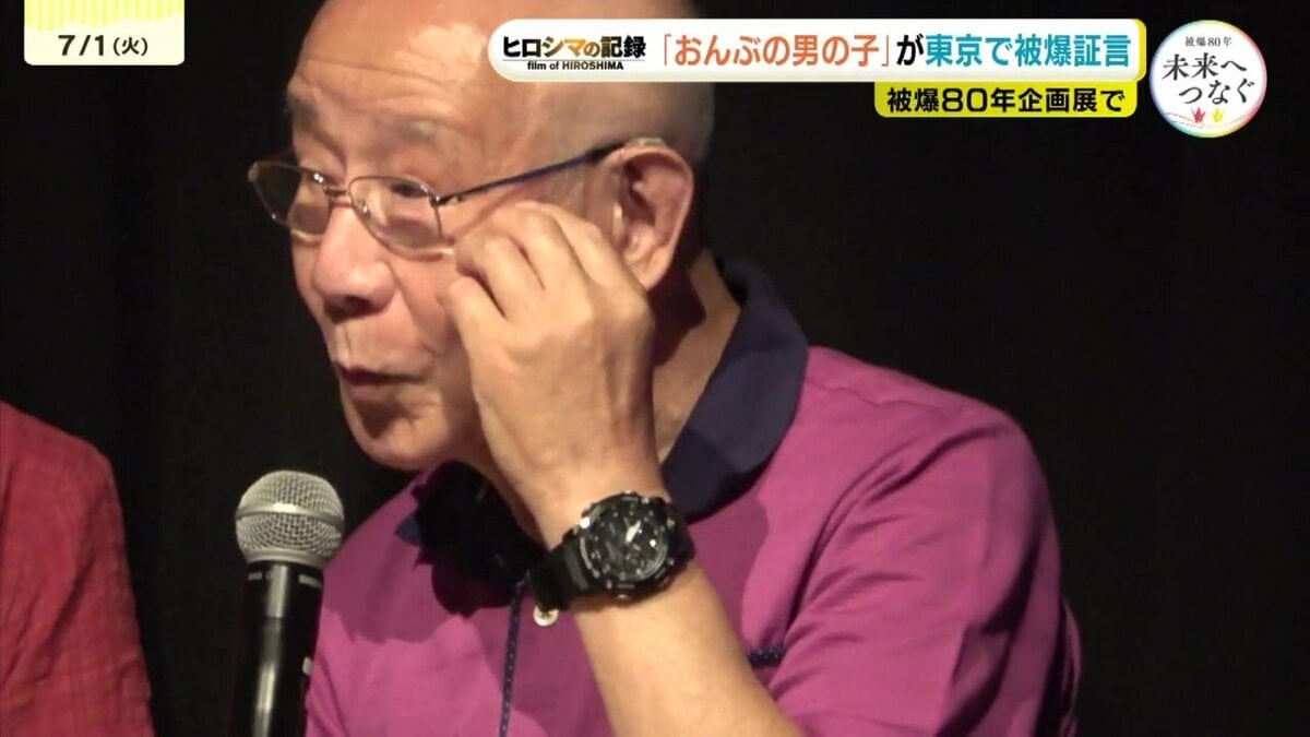 映像には、頭に包帯を巻きおんぶされている男の子の姿もあります。「かわいいでしょう」。登壇しそう話すのは、広島県呉市に住む竹本秀雄さん(83)です。