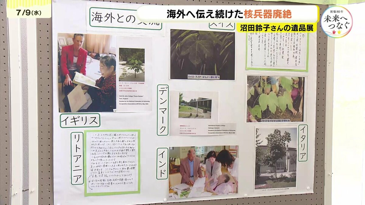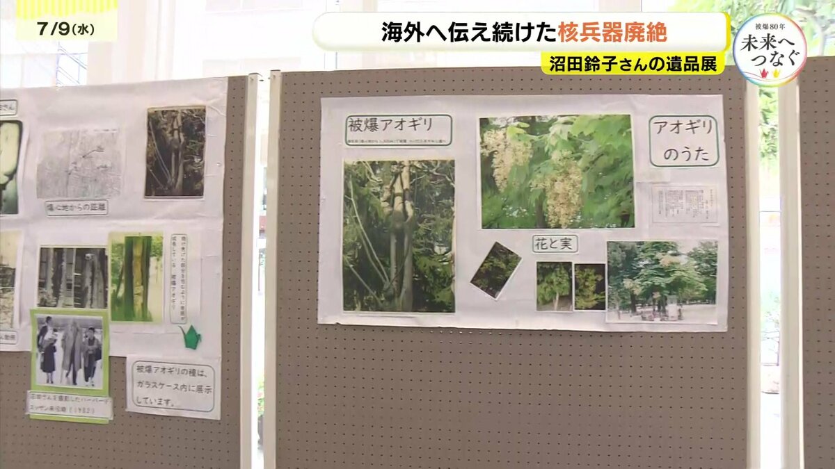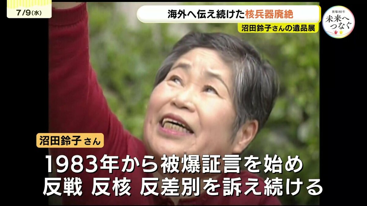 「アオギリの語り部」と呼ばれた沼田鈴子さんの遺品展が9日、広島市で始まりました。
