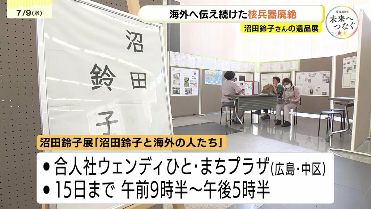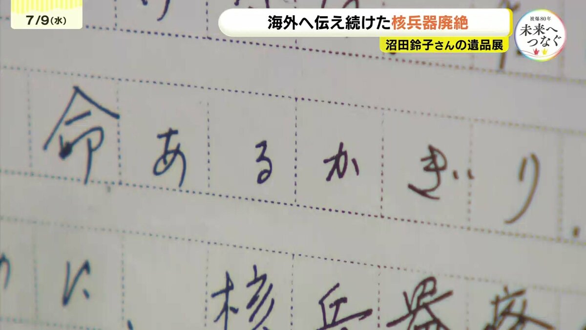 広島市で始まった展示会には、国内外で被爆証言を続けた沼田鈴子さん(2011年に87歳で死去)の手帳や直筆の原稿などが並びます。