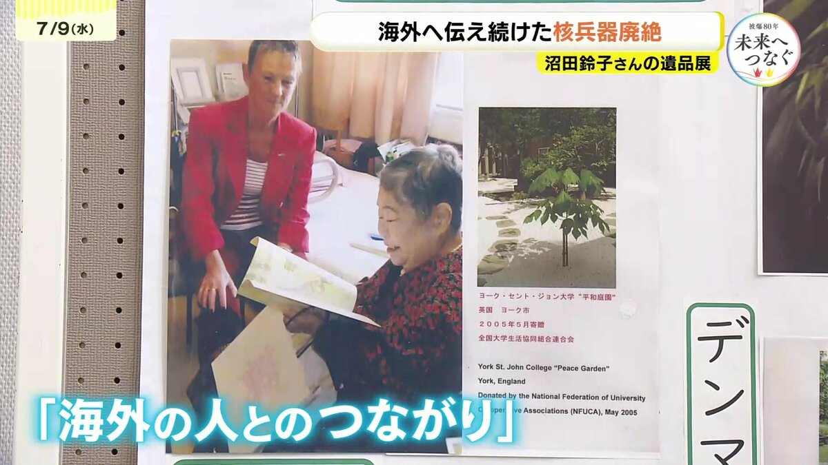 今回のテーマは「海外の人とのつながり」です。およそ20の国と地域で被爆証言したことなどを直筆の原稿用紙に写真、年表も交えて、伝えています。