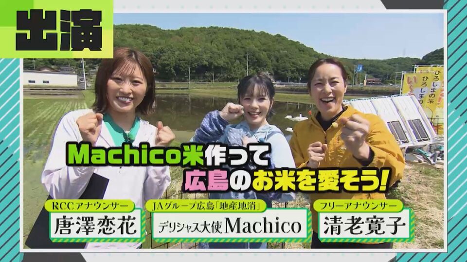 前回の配信 では、JAグループ広島「地産地消」デリシャス大使 を務める広島県出身の人気声優アーティスト Machico さん、RCC唐澤恋花アナウンサー 、フリーアナウンサーの清老寛子 さん3人の “Machico米” 作りがスタート🎉