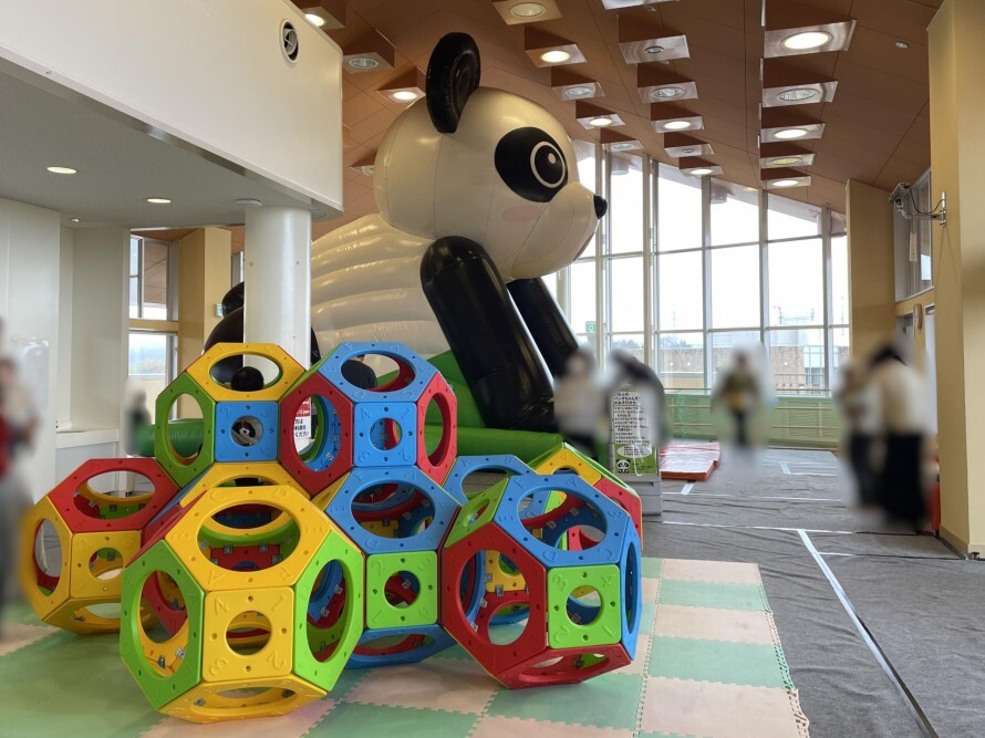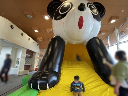 大きなパンダの滑り台はふわふわで、子どもたちも大喜びでした。