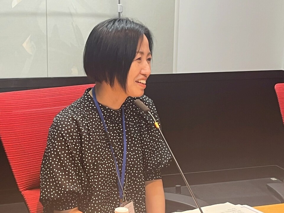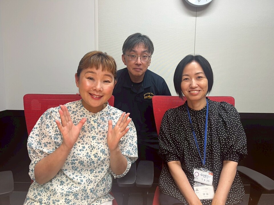 府中町 子育て支援課の勝谷瑞枝さんとともに、