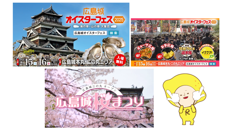 広島の冬を代表するイベント「オイスターフェス」や、今年初開催した「広島城桜まつり」のなりたち、その舞台裏などをお話ししてもらいます。