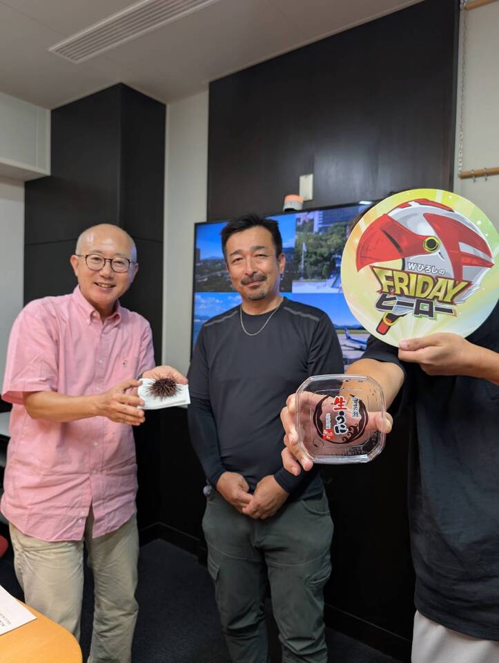 そして、2月の約束通り、収穫時期に入った赤ウニを手に再びスタジオにやってきてくれました。