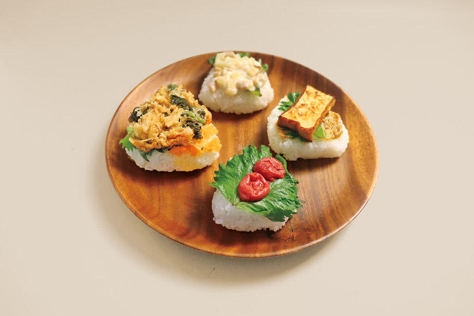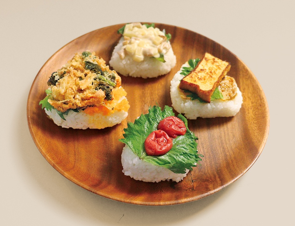 店主の寺川一成さんが「地元米のおむすびで郷原や農家さん、食べる方を元気にしたい」という願いで開業。トッピングには自家農園の新鮮野菜などを取り入れ、自家製の豆乳マヨネーズや味噌を使うなど、調味料にもこだわっている。