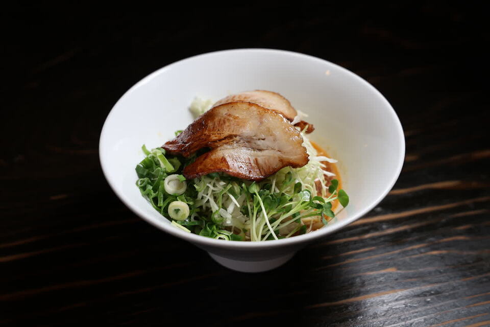 暑い季節にぴったりの「旬麺 晴れる家」の「冷麺(850円)」は、何度も試作を重ねて完成させたこだわりの一杯。呉冷麺の特徴である酸味と甘味がありつつ、自家製ラー油を効かせたスープが特徴。塩分控えめの自家製チャーシューは、驚くほど柔らか。甘めのタレがしっかり絡み、噛むほどに旨みが広がる。とろとろチャーシューとキャベツはここでしか味わえない組み合わせ。最初はキャベツのシャキシャキ食感を麺と一緒に楽しみ、食べ進むにつれてスープと馴染んでいくキャベツの変化も楽しんで。