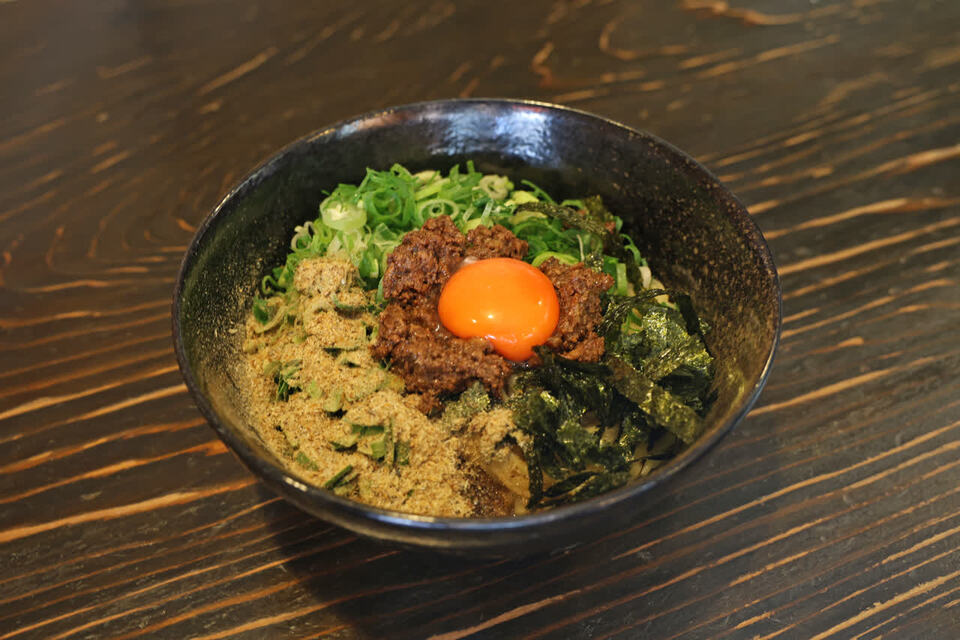 もう一つの看板メニューである「台湾まぜそば(1,000円)」。魚介の旨みが凝縮されたタレとネギやニラがアクセントになり、肉味噌とよく絡む。