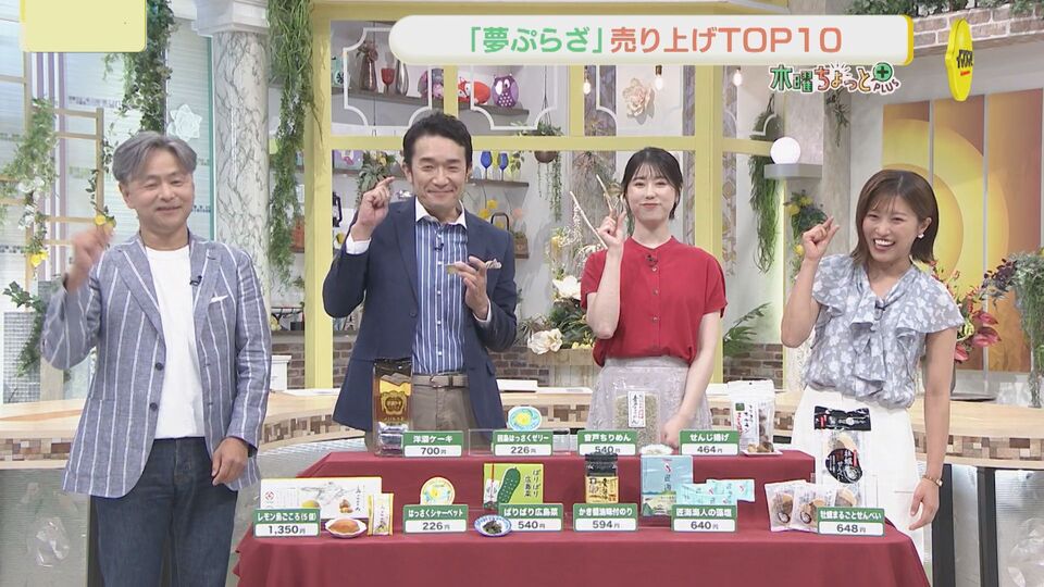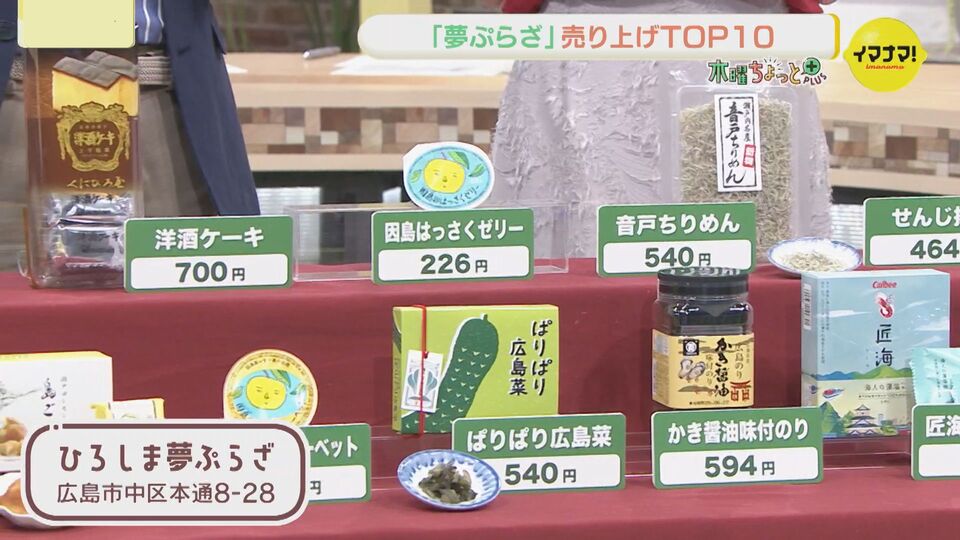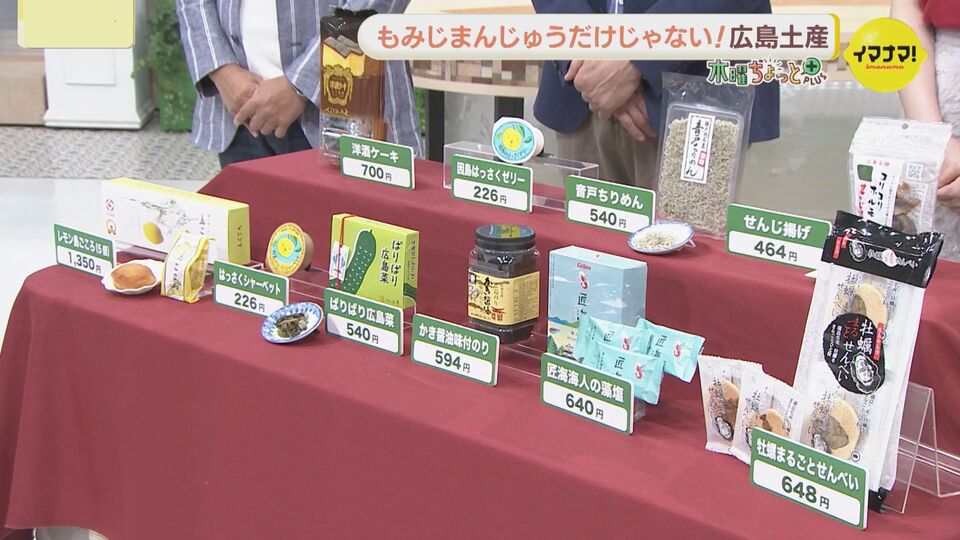 スタジオに用意したのは、「ひろしま夢ぷらざ」で もみじまんじゅうをのぞいた広島土産のベスト10 。