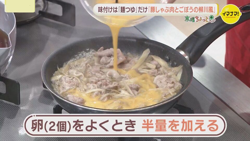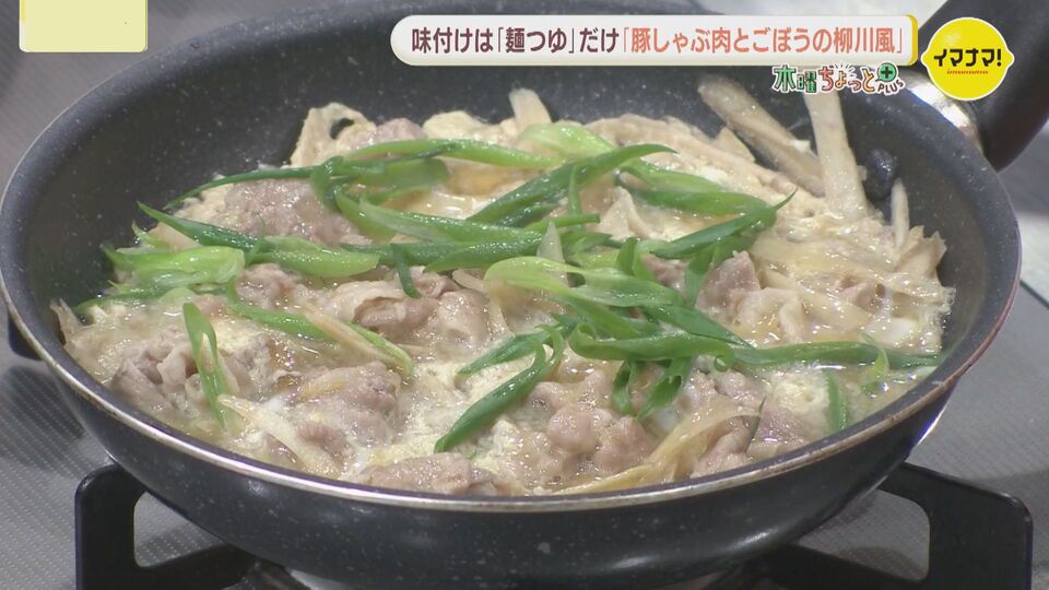 この麺つゆを使って、サクッと作れるメニューが 「豚しゃぶ肉とごぼうの柳川風」。