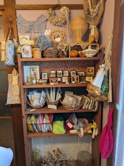 ドライフラワーや編み物、刺繍ブローチ、小さな布小物などの雑貨たち♪