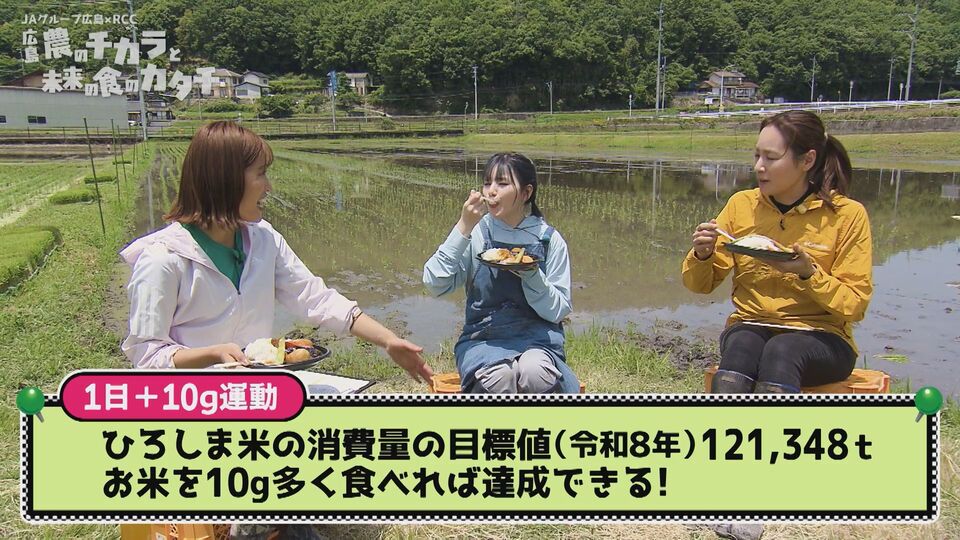 具体的なデータもあって、 広島県民がお米を1日10g多く食べれば、令和8年の目標値が達成できる ということなんです。