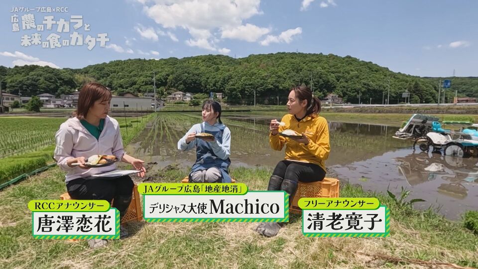 お米大好き3人娘✨ JAグループ広島「地産地消」デリシャス大使 の Machico さん、RCC唐澤恋花アナ 、清老寛子 さんが、 JAひろしま女性部 三原地区本部 のみなさん手作りの 「あきろまんカレー🍛」 を食べながら、広島の農業について語り合います。