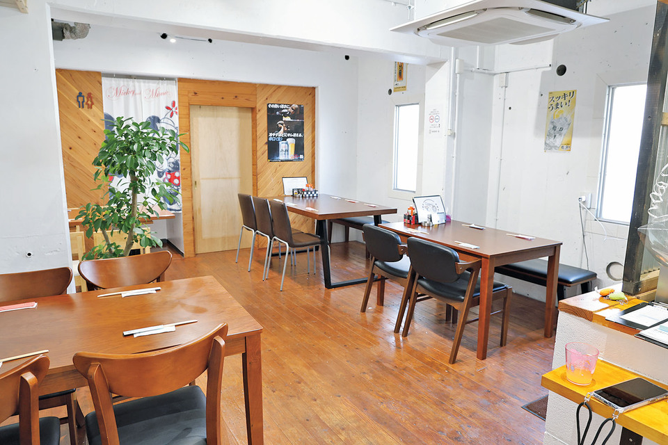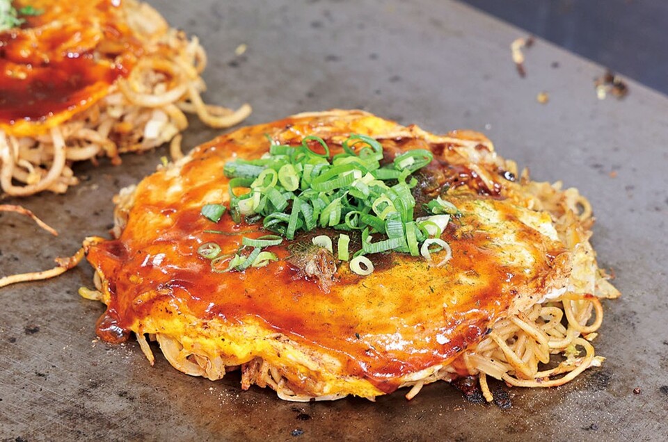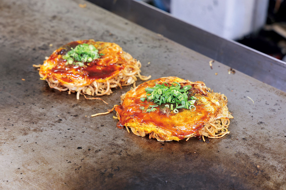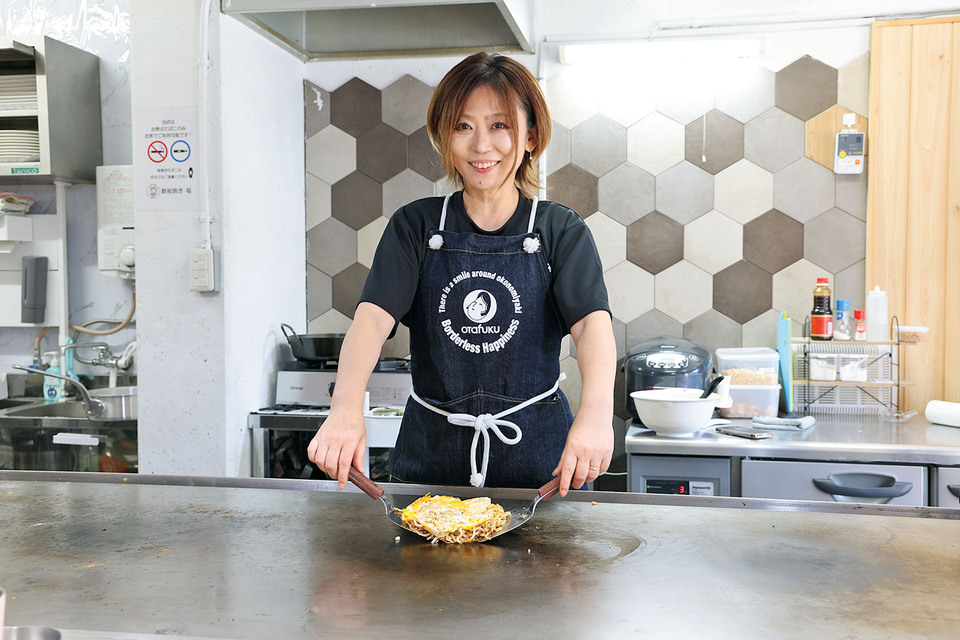 主婦歴32年の店主、礒本美保さんが腕をふるう鉄板料理が楽しめる「鉄板焼き 福」。店内はアットホームな雰囲気で、4人掛けテーブルが4卓、カウンターが6席あり、家族でも一人でも気軽に立ち寄れるのが魅力。オススメは、懐かしさを感じる昔ながらの「お好み焼き肉玉(800円)」。呉焼きスタイルで、生地には出汁を加え、魚粉の旨みが口いっぱいに広がる。麺は呉で作られたものを使い、たっぷりの野菜も嬉しいポイント。「皆さんに福がありますように」という想いを込めた店名には、まさに母親のようなあたたかい愛情が込められている。