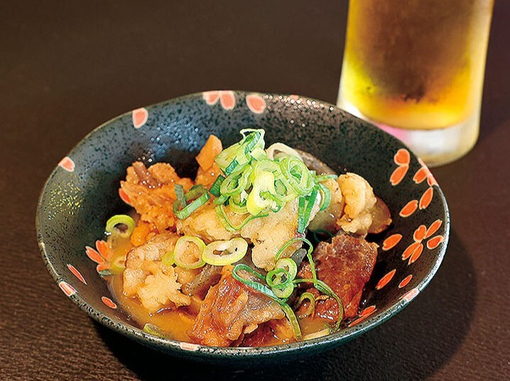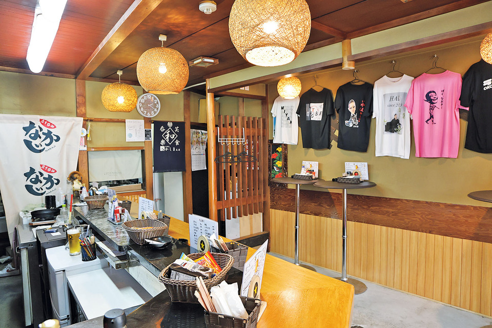 呉では珍しい立ち飲み屋スタイルが楽しめるお店。自慢の「牛すじ煮込み(400円)」は、しっかりと味がしみ込み、ビールとの相性は抜群。また、店内には呉市内の飲食店のTシャツが飾られており、立ち呑み文化の一つである"情報交換の場〟としての空間を演出。「呉に立ち呑みの文化を広げていきたい。男女問わず、0次会や隙間時間に気軽に立ち寄ってください」と店主の中島宏章さん。お店選びに迷った時の一軒目としても最適。