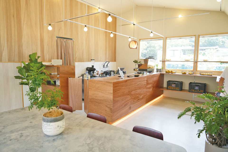 ブルーベリー観光農園に併設されたカフェ。農園のブルーベリーを贅沢に使った砂糖不使用の「スムージー 島ブルーベリー (800円)」が楽しめる。さらに、しっとり濃厚な「自家製チョコブラウニー(700円)」や、口当たりなめらかな「バスクチーズケーキ(700円)」などの本格スイーツも人気だ。もちろん、ブルーベリーの農園見学も可能。広島市内からも多くの方が足を運ぶ話題のスポットへ、一度訪れてみてはいかが。