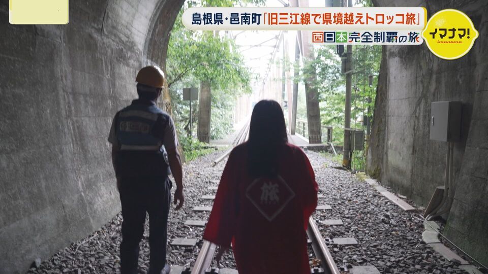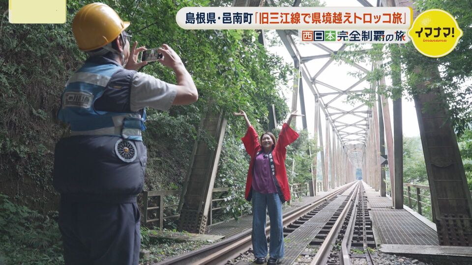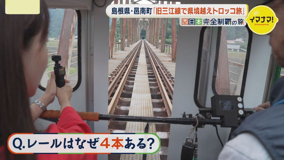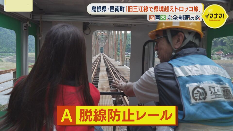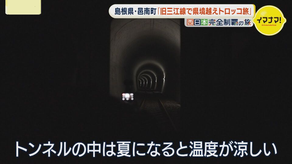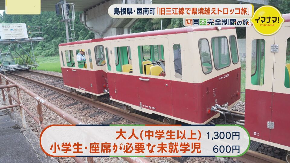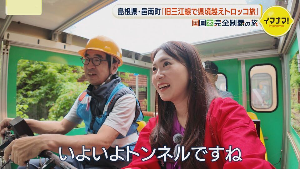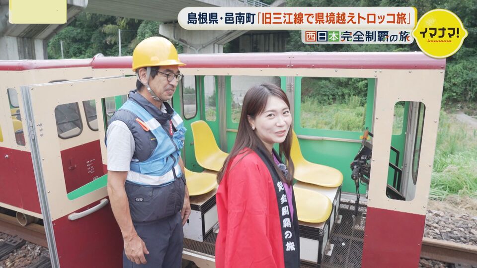 この三江線の廃線跡で、オリジナルのトロッコに乗ることができるんです。カワイイ車両ですね。