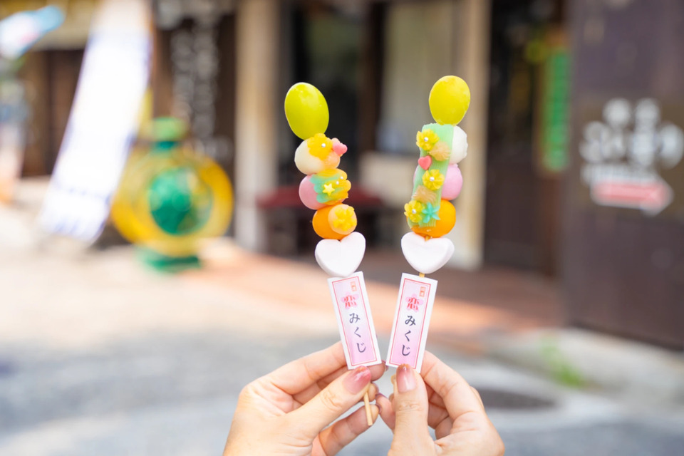 倉敷川沿いに店舗を構える「おざきや美観地区店」で見つけた「恋みくじだんご」にキュン! カラフルな餡とハート型マシュマロの組み合わせがとにかく可愛くて、季節ごとに変わるデコレーションも楽しみの一つ。そして気になるのは串に添えられた恋みくじ。開く瞬間のドキドキ…! 歩きながら手軽に食べられるので、散策のお供にもぴったりです。
