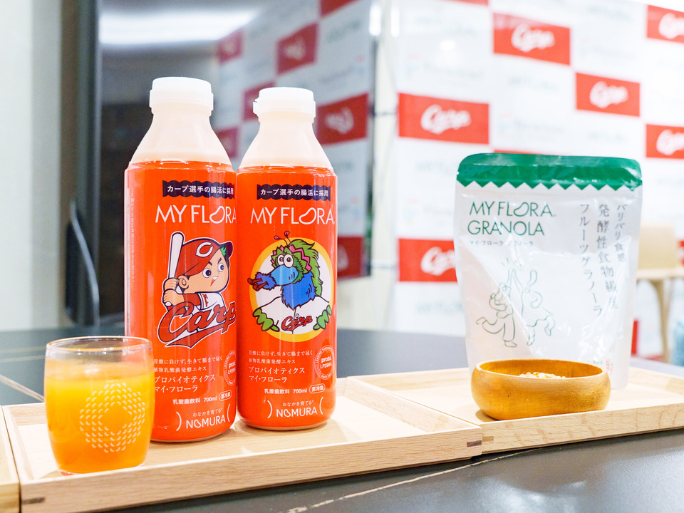 そんな思いのある「Gut Power Project」。プロジェクト始動を記念し、ファンや広島の皆さんにも腸活を体感していただけるよう、カープ選手の腸活にも採用されているドリンク「マイ・フローラ」のカープ特別パッケージボトルを3,000本限定販売するとのことです。