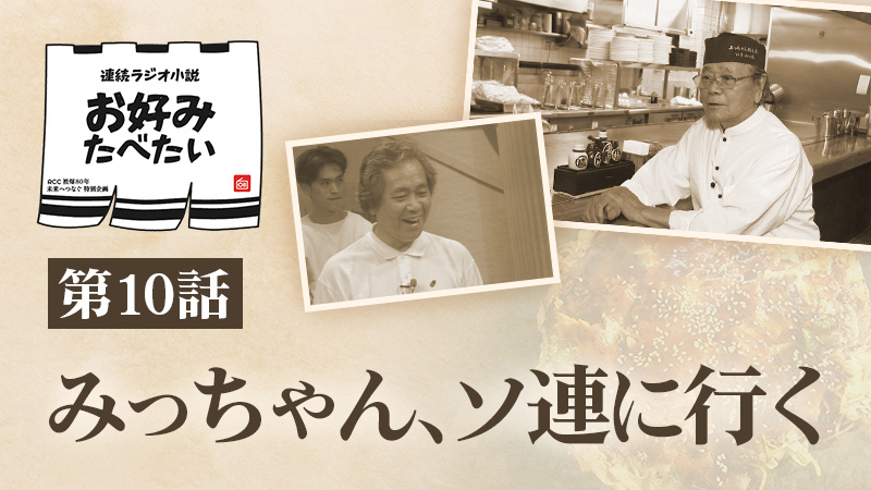 東京でのお好み焼講師、テレビなどのメディア出演。お好み焼人気によってみっちゃんの周辺もさわがしくなりました。そんな中、再び駆け込んできたのがみっちゃんの信頼するビジネスパートナー、現在オタフクソース最高顧問の佐々木尉文(ささき・やすふみ)さんです。