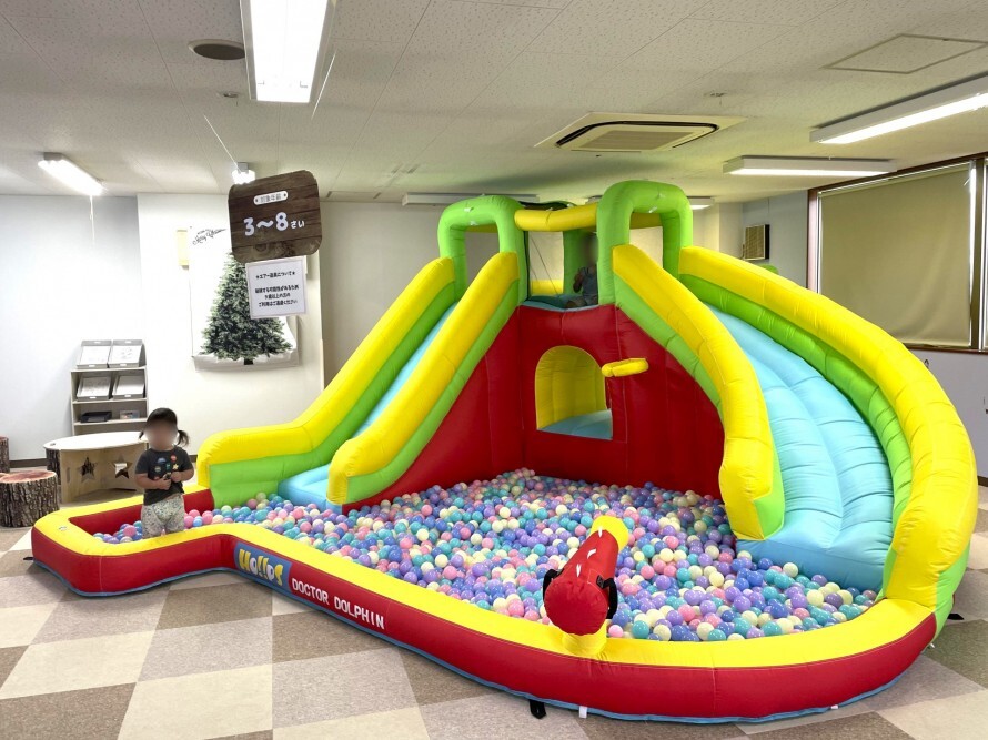 0歳から2歳までの小さい子用のスペースは柵で区切られていて、こちらにもボールプールとすべり台が。