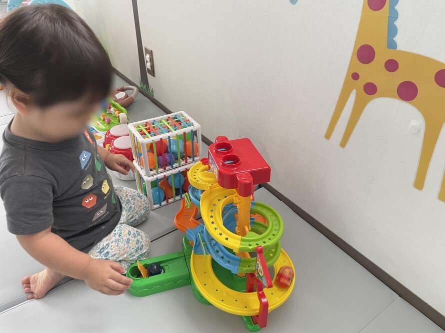 初めて訪れる場所で少し緊張していたようですが、ゲートの中の0歳から2歳向けエリアでは安心して遊べたようです。