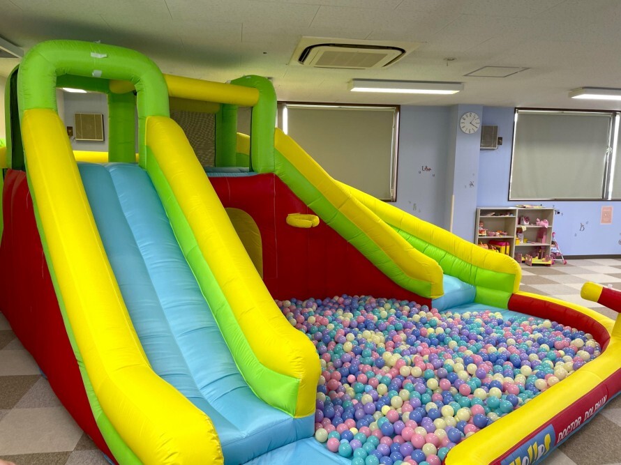 広いお部屋に入ると目に飛び込んでくるのは大きなエアー遊具!