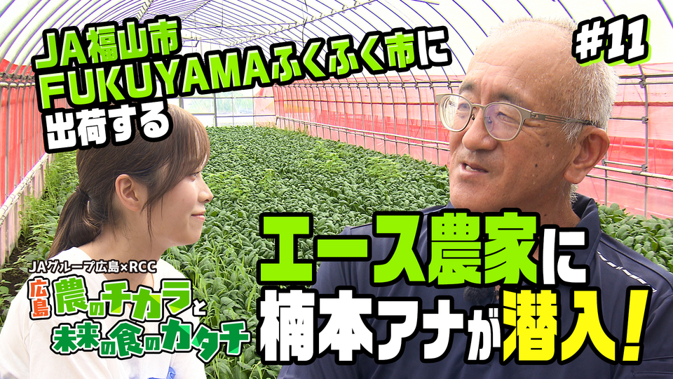今回は、JA福山市 食と農の交流館「FUKUYAMAふくふく市」 で出荷量No.1🥇 猪原正章さんのコマツナ畑 に、RCC 楠本麗奈アナウンサーが 潜入🥬