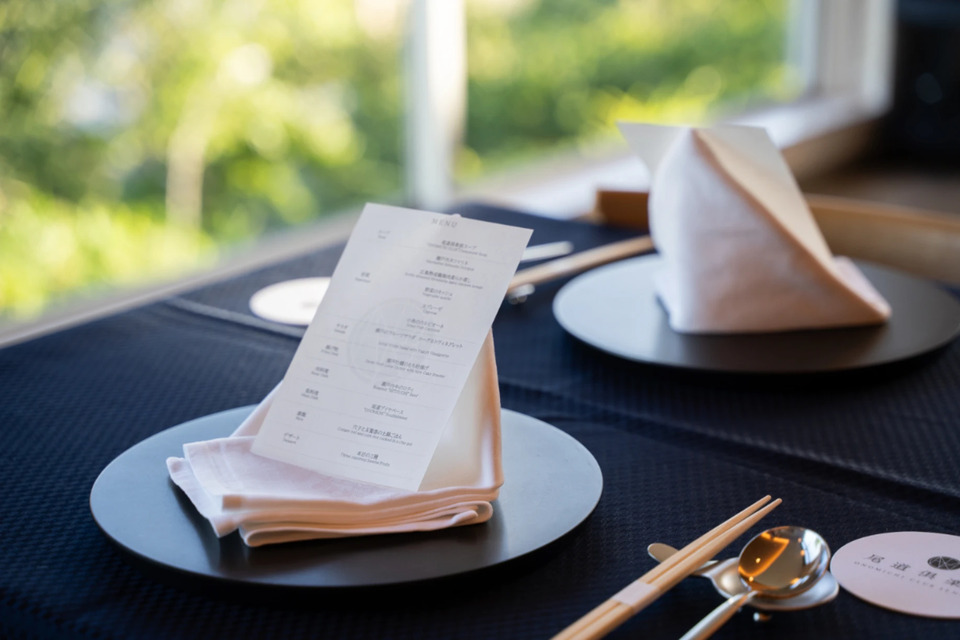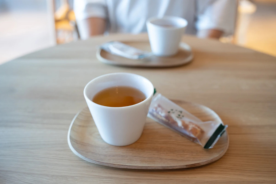 スタッフの丁寧な案内とともに館内へ。「お荷物、お運びしますね」。え、ポーター付き?と思わず心の声が出そうに。こんなおもてなしがあるなんて…と驚きながらロビーへ。チェックイン前に提供されるオリジナルの和紅茶と小さな和菓子も心憎い演出。尾道水道を望む景色とともに、滞在への期待がふくらむ時間です。
