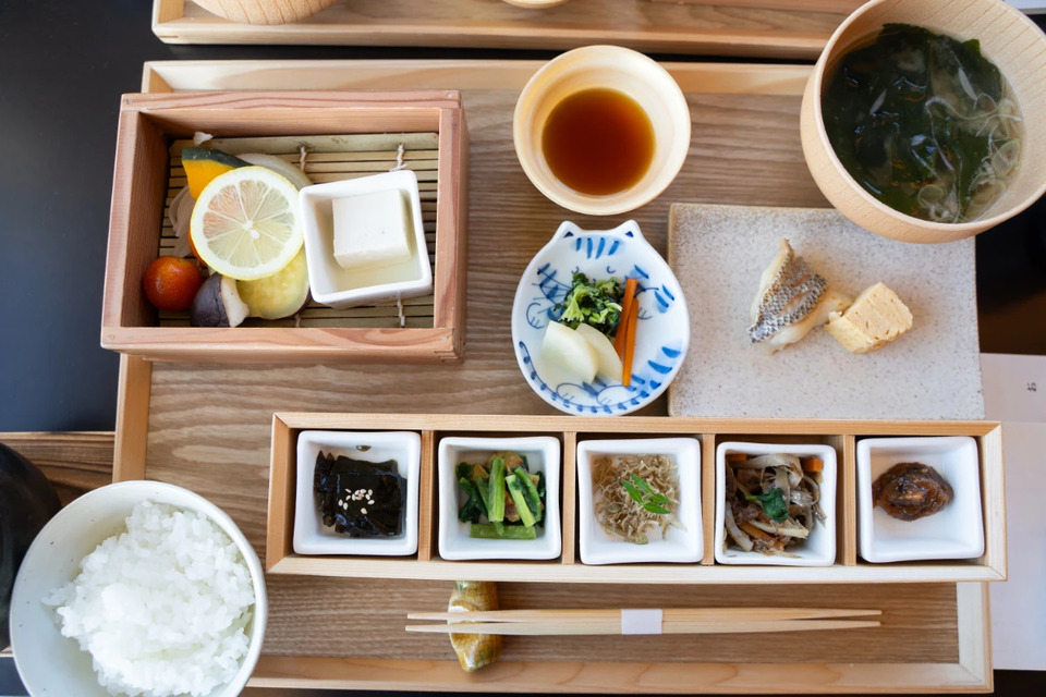 朝食は、旬の野菜や瀬戸内の天然魚、ご飯のお供が並ぶ和定食でした。素材の良さを生かした滋味深い味わいが、1日の始まりを清々しく彩ってくれます。