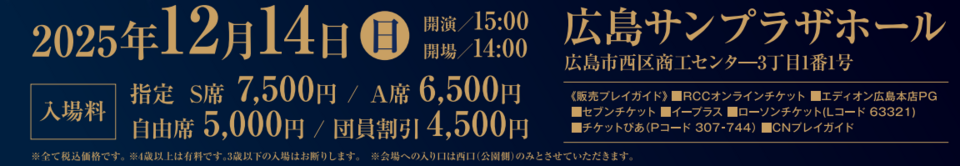 広島市西区の広島サンプラザホールで午後3時開演です。