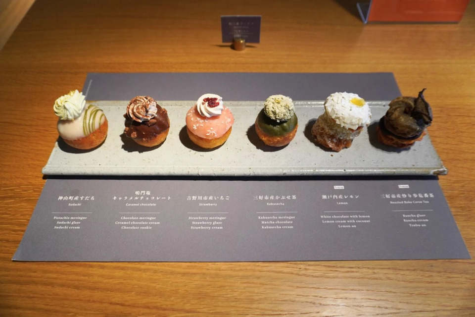 ここでは、徳島県産の和三盆糖を使ったドーナツセット(6種)が楽しめます。しっとりとした食感と優しい甘さで、まるでケーキのよう!ついつい次に手が伸びます。