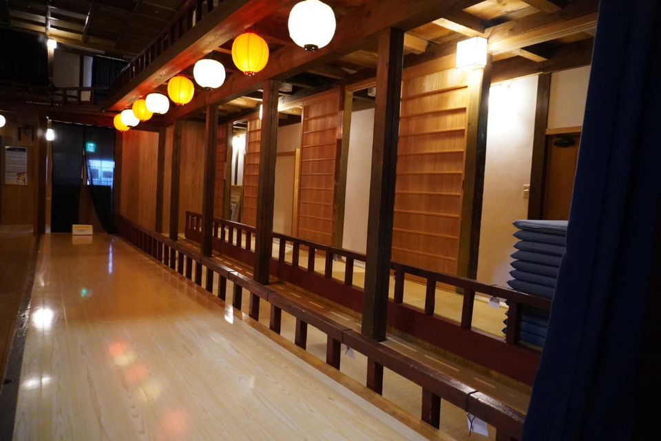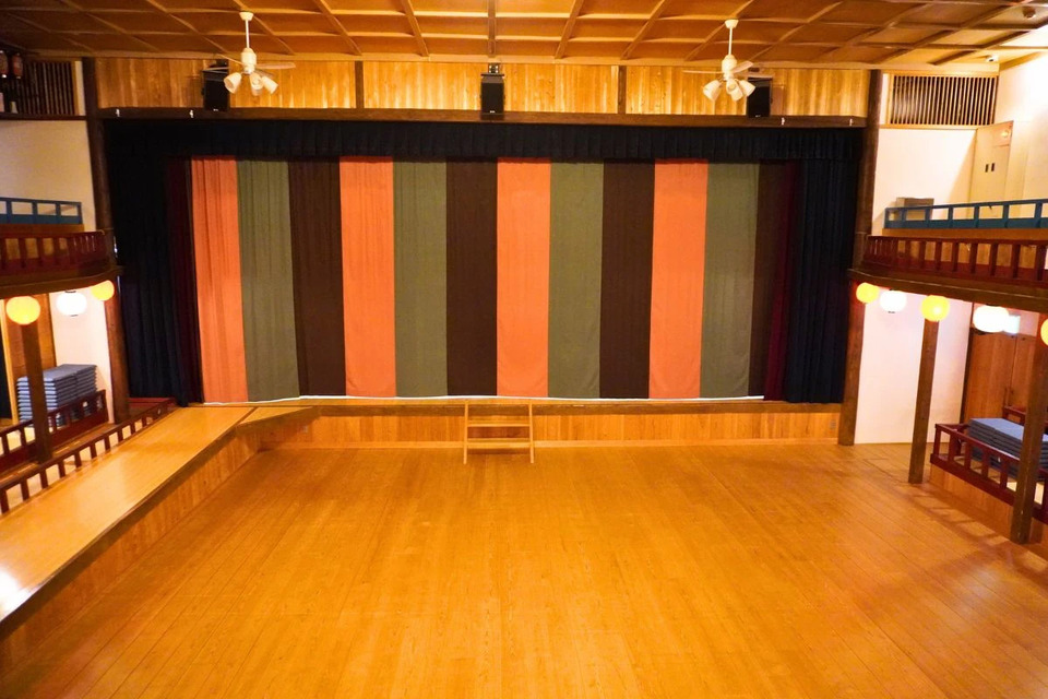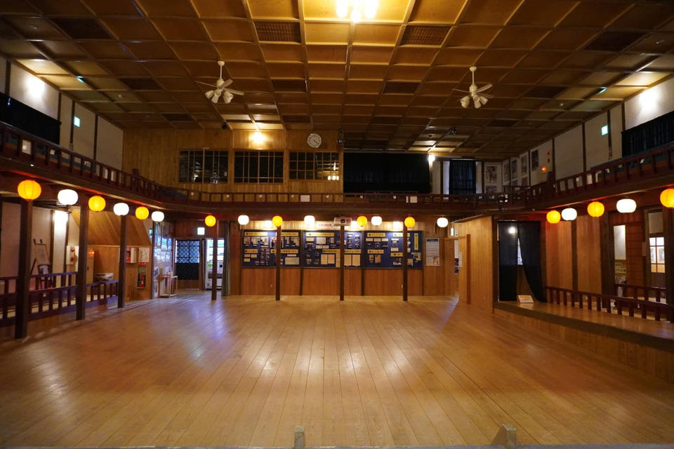 上を見上げれば、昔ながらの梁(はり)や桟敷席が目に飛び込んできます。