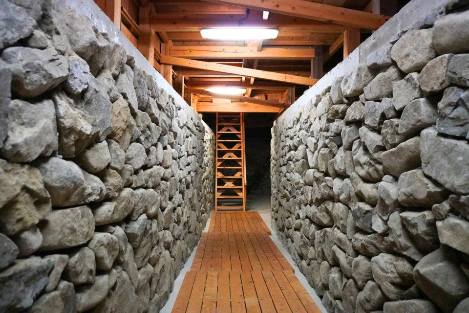 地下にある「奈落(ならく)」は、役者が花道へ素早く移動するための秘密の通路。石垣に囲まれていて、まるで戦国時代の城の地下通路みたいな雰囲気…