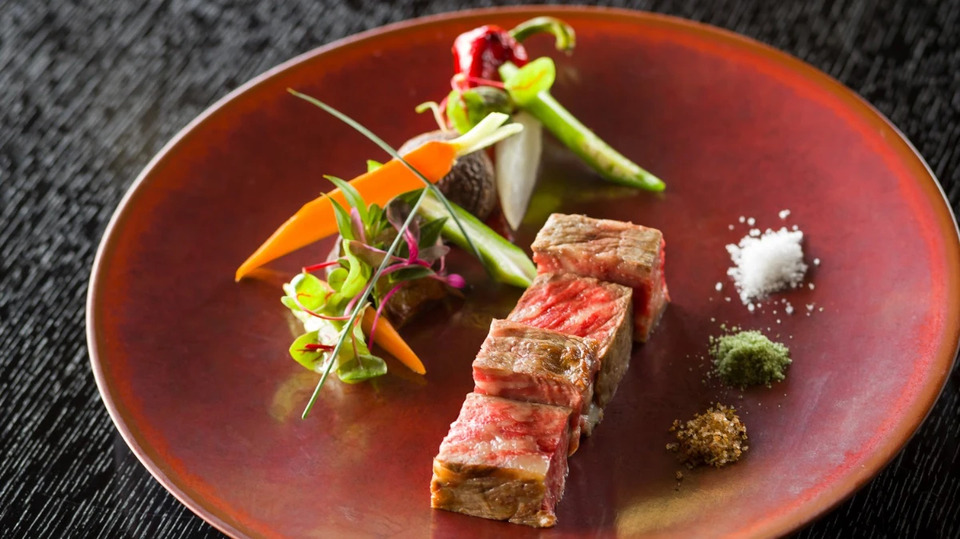 いただいた但馬牛のメインは、柔らかくジューシーでまさに絶品。