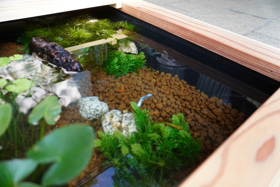 近くのビオトープでは、元気に泳ぐメダカたちの姿も。ちなみに猫たちは、メダカにちょっかいを出さないようしっかり教えられているそうで、その賢さにも驚きです!