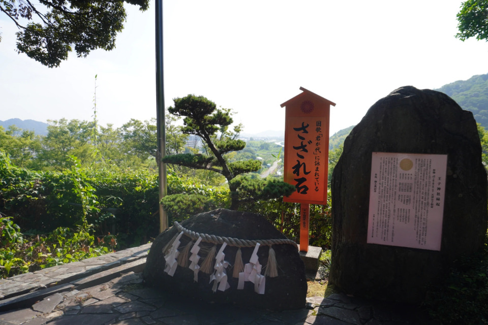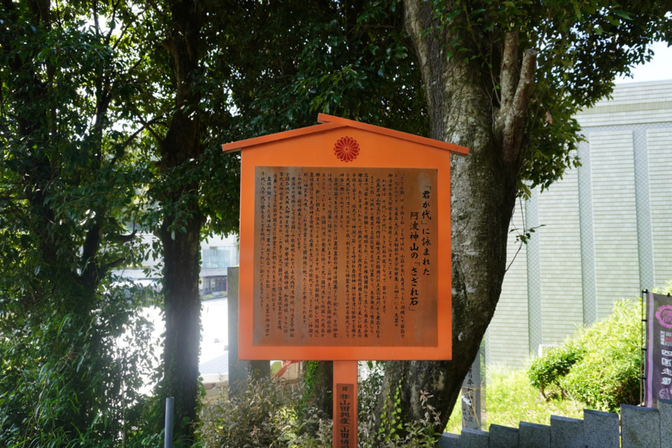 境内には、「君が代」に登場する“さざれ石”と伝えられる石も祀られています。しめ縄が巻かれたその姿はとても荘厳で、思わず足を止めて見入ってしまいます。